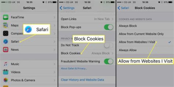 To choose whether Safari blocks cookies, click Settings > Safari, and then click Block all cookies. If you block cookies, some websites may not work. Here are some examples: You may not be able to login to the site with the correct username and password.