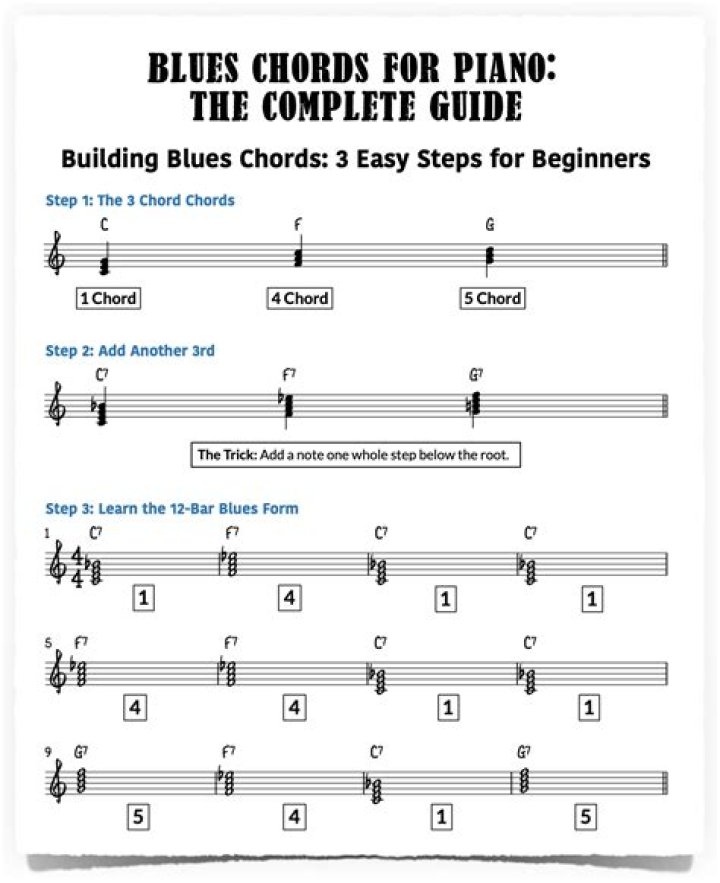 A 12-bar blues is a series of chords that determine the number of bars or beats in a typical blues song structure. In this lesson, you'll learn a basic blues progression, listen to some famous sample 12-bar blues songs, and learn how to play the blues on the piano.