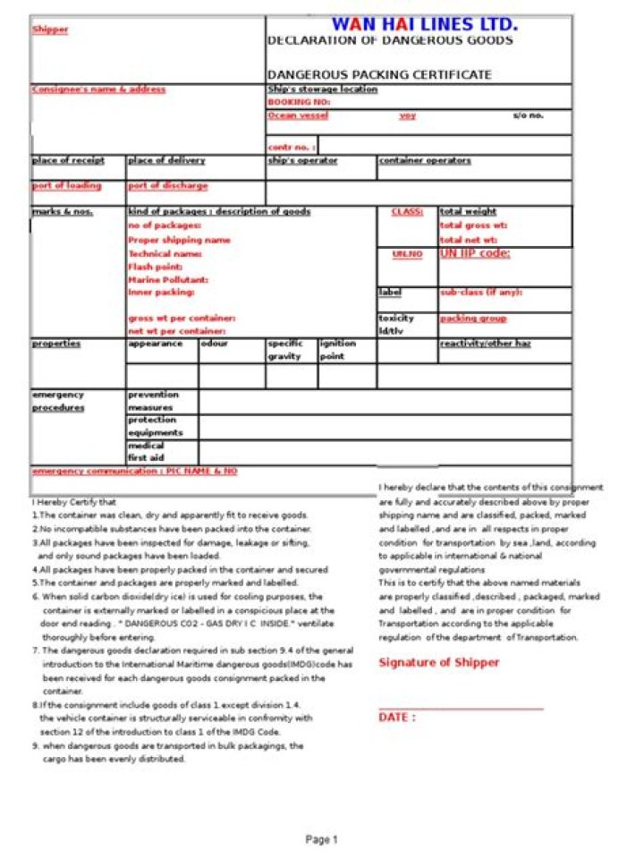 Dangerous goods packing certificate - How To Discuss