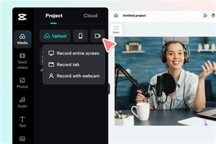 You can also independently record the webcam and the screen recordings, for this you can go to the clipbin area and then to the "More" button and then to "Record camera". Now you can see your computer's camera turn on and finally to start recording, press the red "start ording" button.