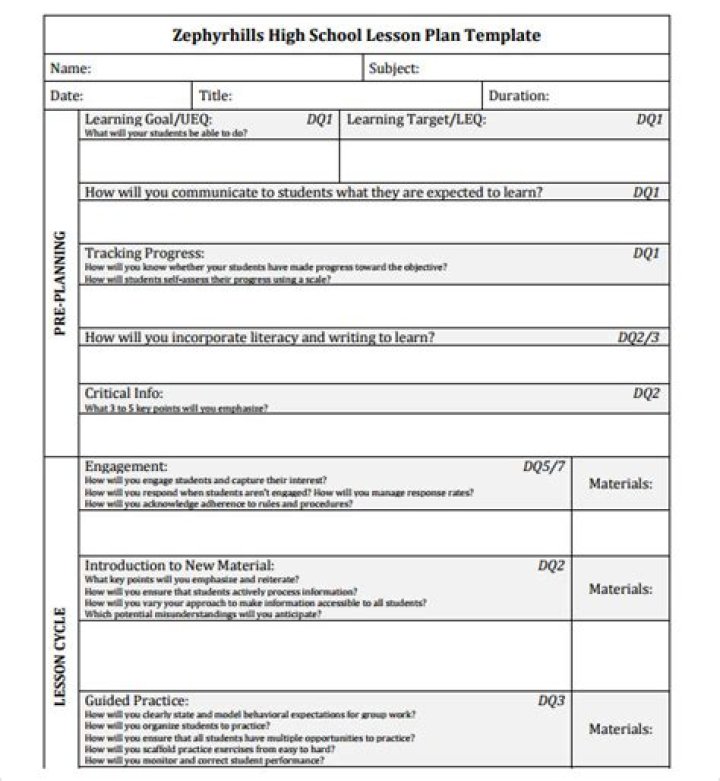 High school lesson plan template