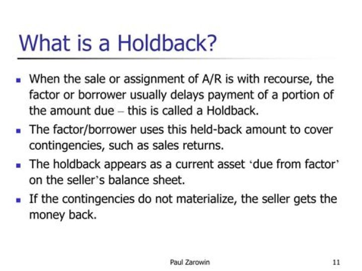 Definition of Holdback: