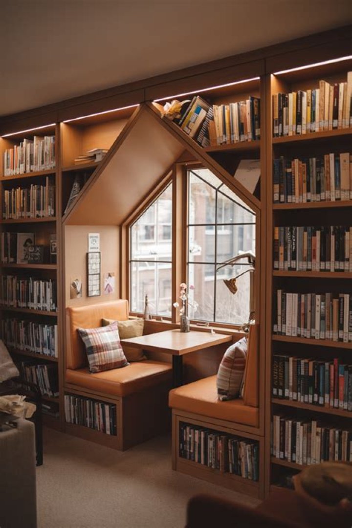 Put the books down, put them where you left them. In practice, the heaviest books are best placed on the bottom shelf, while the most popular books are placed on the middle and top shelves. Don't fill the shelves. Consider a comfortable table and chairs.