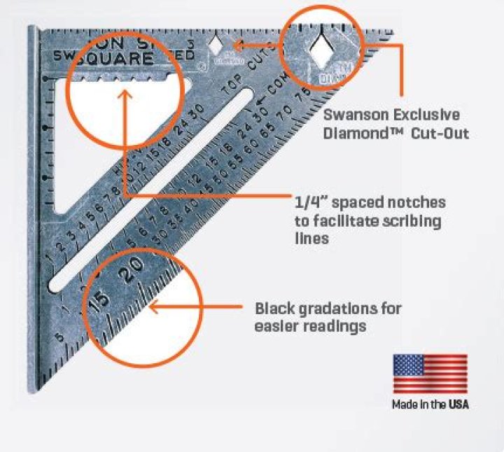 Do you even know what the diamond is on a speed square? Other interesting features - Swanson Speed Square has a patented feature: diamond cut, a diamond-shaped cut on the edge of the tool line. This turns a separate line from the whiteboard to a right angle so you can create a perfect 90 ° line from the writing angle to the edge of the whiteboard.