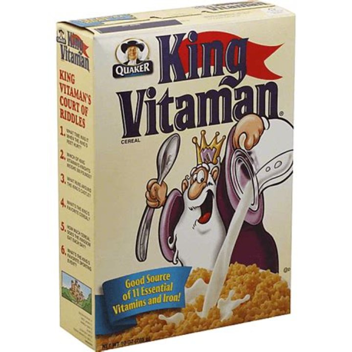 King Vitaman was a sweet cereal brand made by Quaker Oats and sold in the United States. Muesli came on the market in 1968 and has changed mascot several times. According to Quaker Oats, the wheat was stopped in 2019.