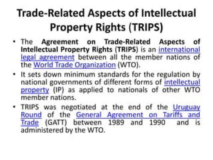Trade related aspects of intellectual property rights (TRIPS),