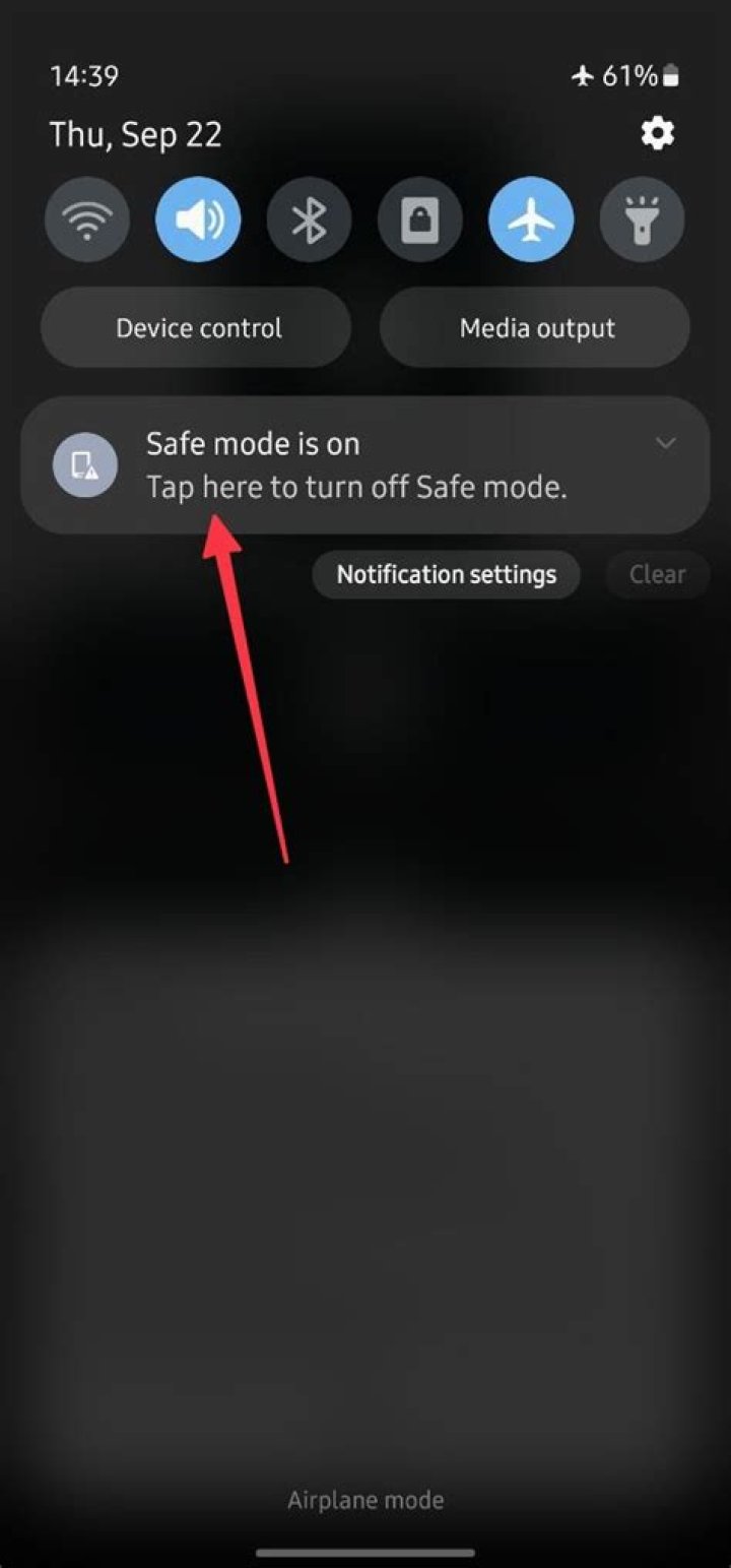 To disable safe mode on Android, first swipe down the notification bar and tap the notification in safe mode. Then click Restart when prompted. If you don't see this notification, turn off your phone by pressing and holding the power button. If your phone is turned off and the screen is black, press and hold the power button again to turn on the phone.