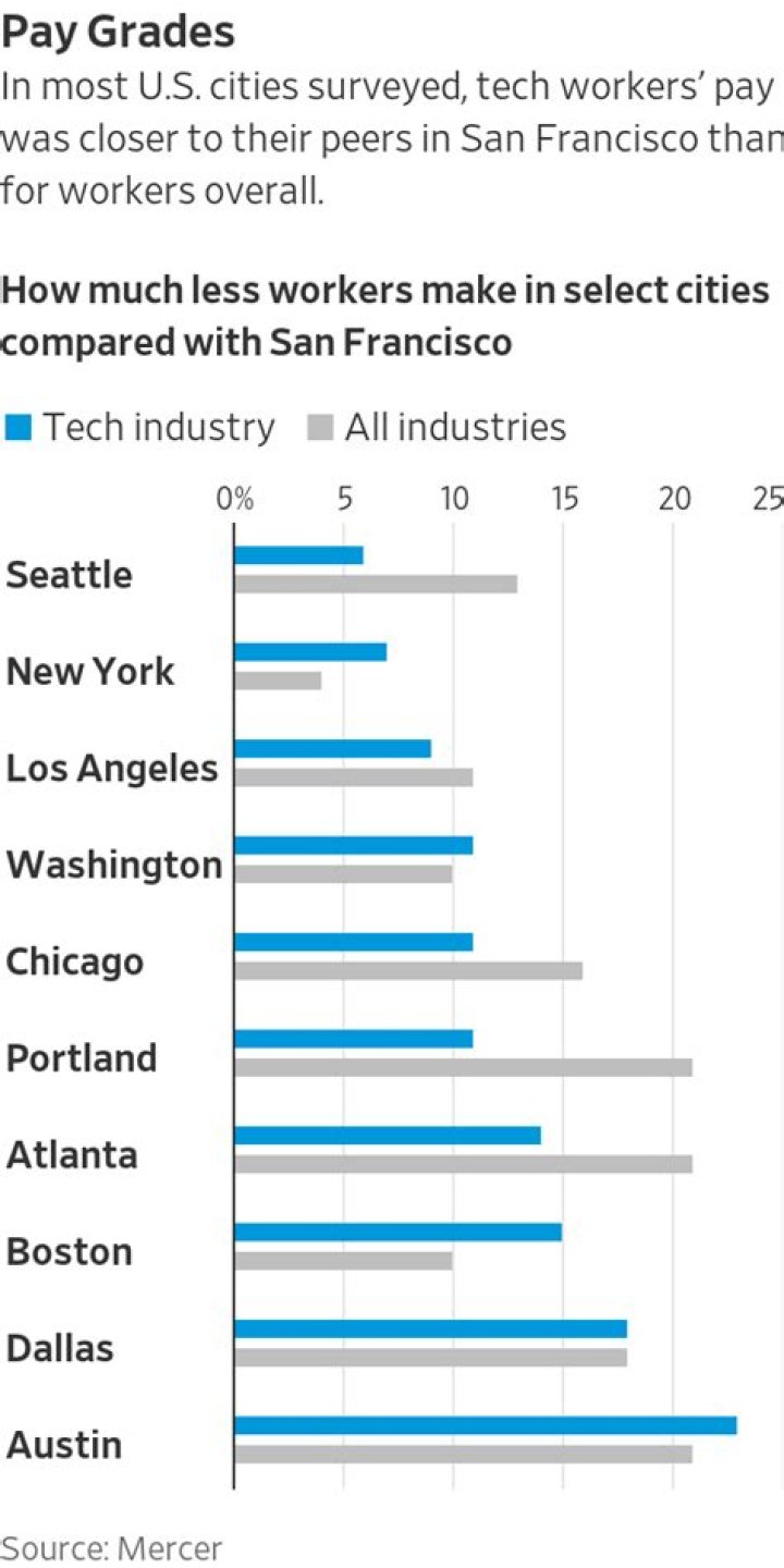 Grace Evans Tech workers leaving the San Francisco Bay Area to work remotely in the midst of the pandemic are being forced to witness a harsh reality: pay cuts.